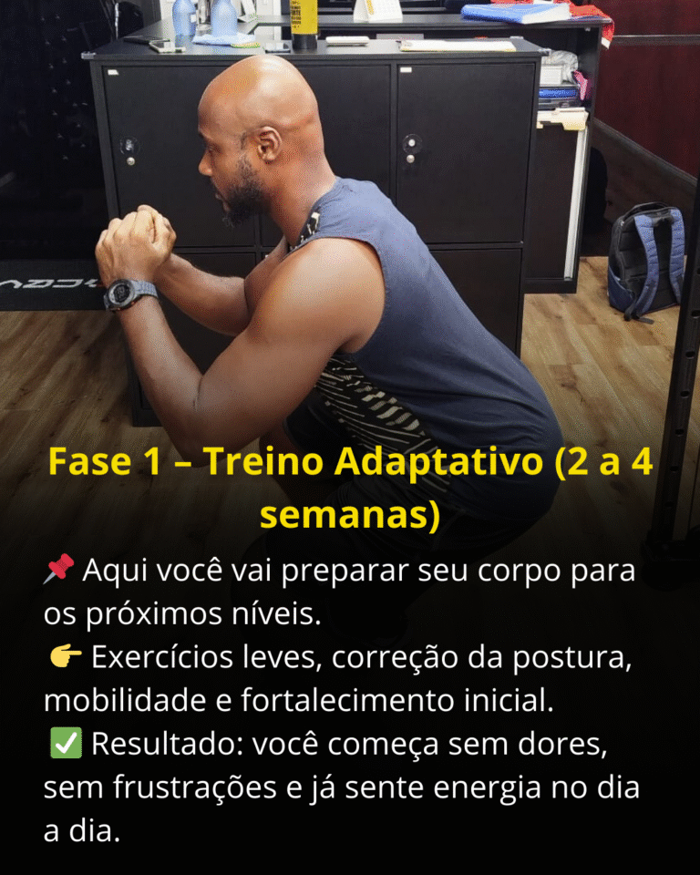 Sem problema! O programa é dividido em fases adaptativas, iniciantes, intermediárias e avançadas, justamente para respeitar o fator humano. Ou seja: você evolui no seu ritmo, sem risco de desistir ou se frustrar.